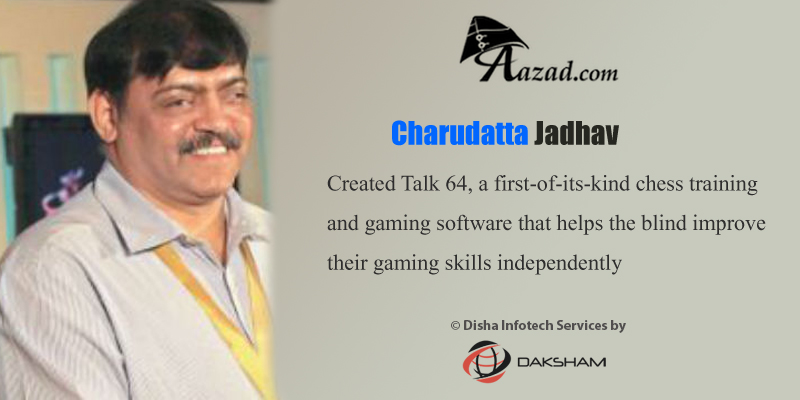 शतरंज के खेल में दृष्टिहीन खिलाड़ियों को शायद ही शामिल किया जाता,अगर चारूदत्त जाधव इसकी पहल न करते |चारूदत्त ने विश्व का पहला टॉकिंग सॉफ्टवेयर टॉक-६४ विकसित किया जिसे १८ से ज्यादा देशों के खिलाड़ी इस्तेमाल कर रहे है |