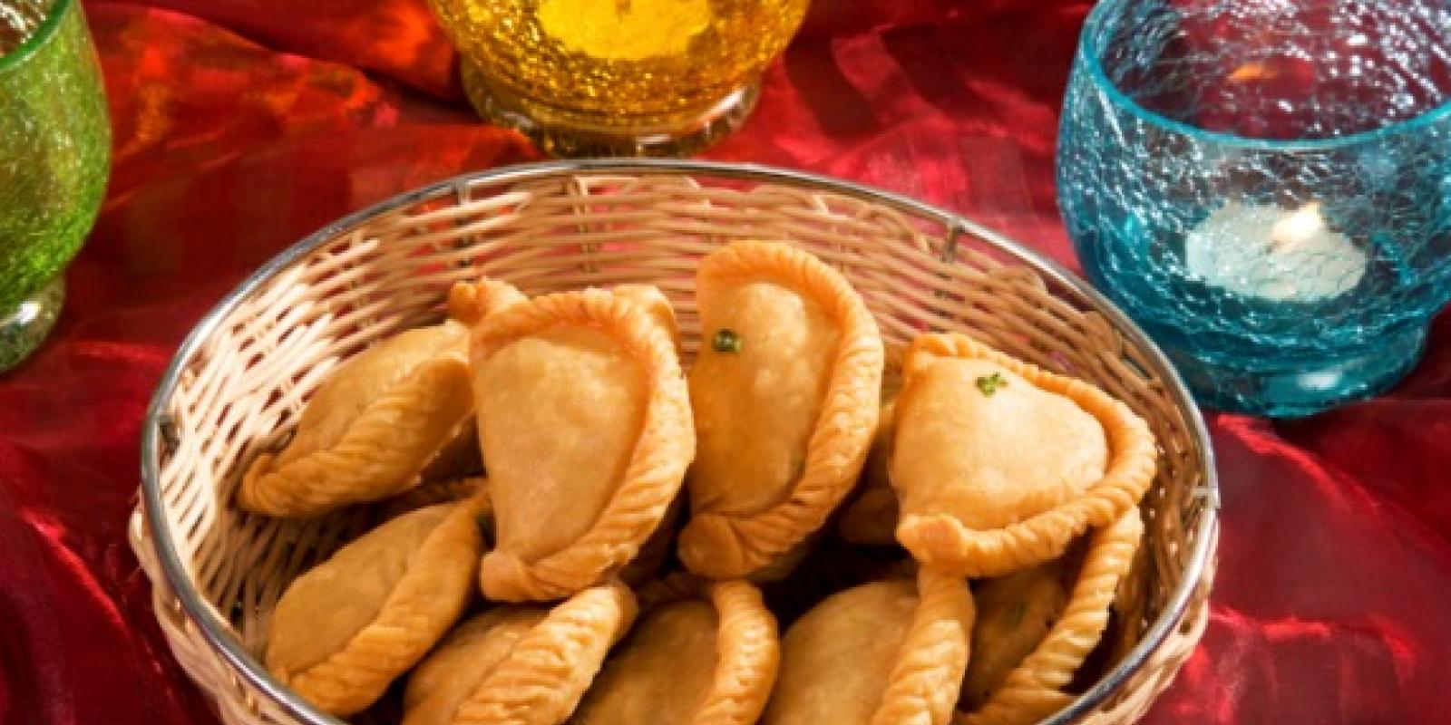• लोइयों को छोटी पूरी बेल कर इसमें भरावन भरकर किनारों से मोड़ते हुए गुझिया काट लें।
