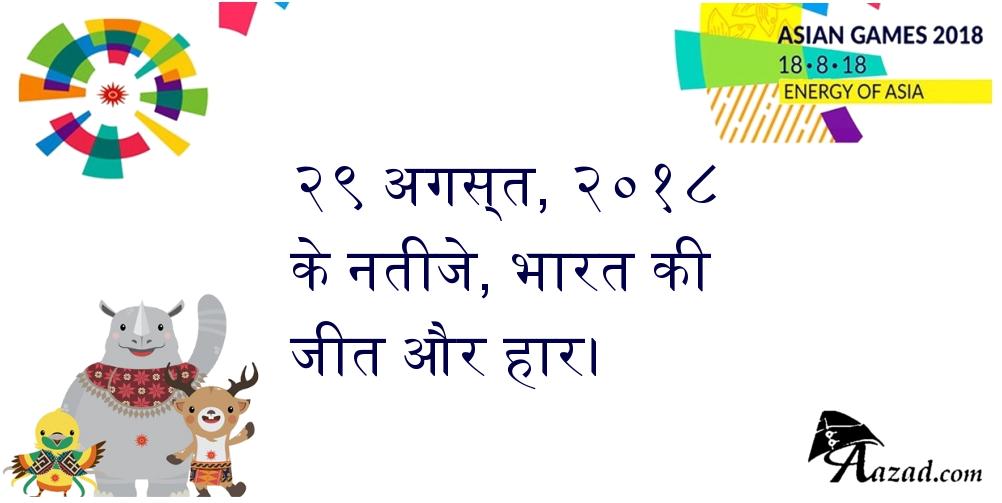 २८ अगस्त, २०१८ के नतीजे, भारत की जीत और हार।